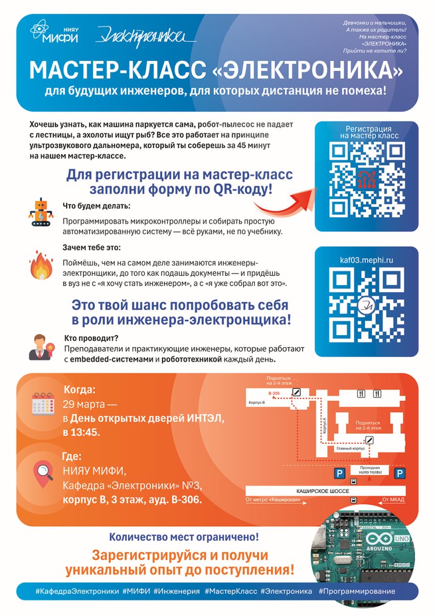 Приглашаем на мастер-класс кафедры Электроники на ДОД ИНТЭЛ НИЯУ МИФИ
