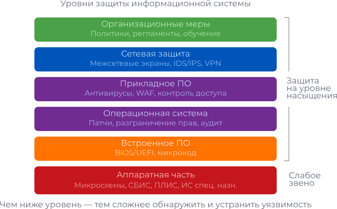 - Программная защита вышла на насыщение — главная уязвимость сместилась в аппаратную часть. Без защищённых микросхем и аппаратно-программных комплексов безопасность инфраструктуры не обеспечить.
